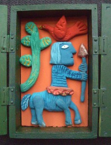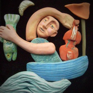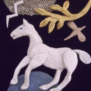 Working on such a small scale, modelling the clay that the bronze was cast from was a refreshing experience. These became the art work itself and moulding, sanding and painting these small items and creating dioramas with inspiration from folk art and historic paintings has become a playful obsession.